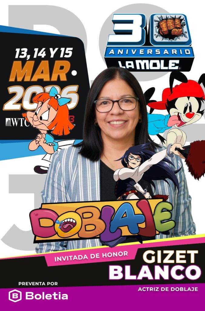 Su primera carta es una actriz de doblaje venezolana destacada por su versatilidad, sensibilidad artística y una conexión emocional profunda con los personajes que interpreta. Gizet Blanco la voz de Wakko Warner de los irreverentes «Animaniacs» y de Elvira de los «Tiny Toons«, llegará a los pasillos de la convención por primera vez.