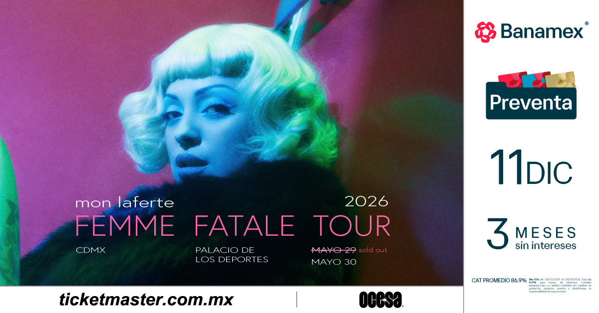 La fecha que quedó completamente vendida es el 29 de mayo, ahora Mon suma el 30 de mayo a su «Femme Fatale Tour«.